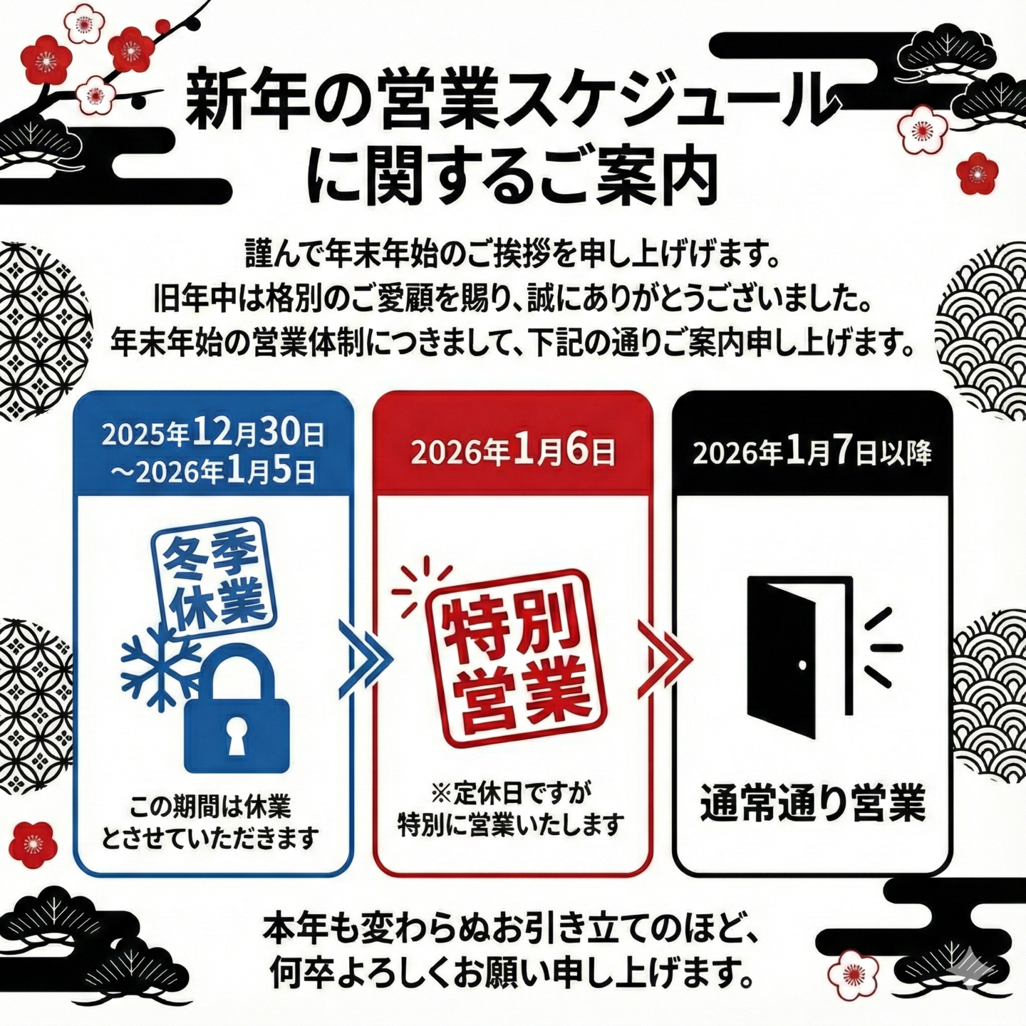 この度、より良いサービス提供と商品管理体制の充実を図るため、2025年11月より定休日を変更させていただくこととなりました。お客様には大変ご不便をおかけいたしますが、何卒ご理解とご協力のほどお願い申し上げます。